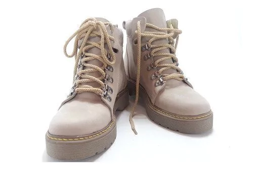 Increibles Botas Borcegos de caña corta, tobillo acolchonadito, 2 tonos super tendencia, verde edén o vison. Cancherisimos y cómodos. La base truck es de goma antideslizante. Como medio de acceso posee acordonado con alpinos.