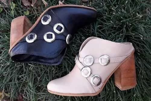 Divinos !! Únicos !! No vas a pasar desapercibida con estos Zuecos de Cuero con Monedas en metal Plateado. Dos opciones de color, Te cuesta decidirte ?